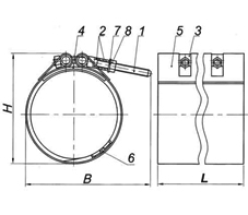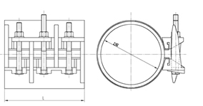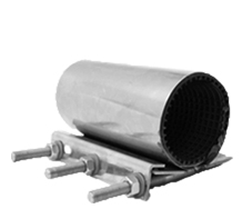 Односторонняя свертная муфтавыполнена в виде нержавеющей ленты, края которой стягиваются оцинкованным крепежом через встроенные трубки