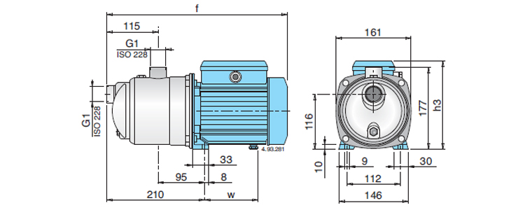 - Корпус насоса с резьбовыми патрубками – нержавеющая сталь AISI 304.