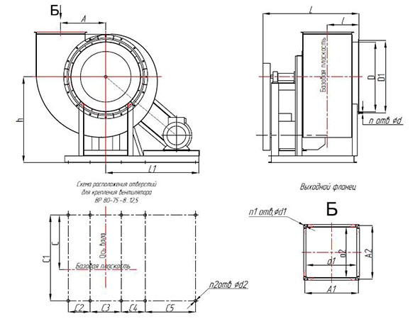 Вентиляторы правого вращения ВР80-75-5 №10 - размеры и схема